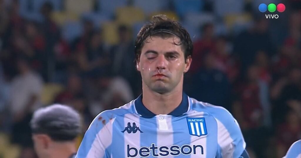 El 22 de octubre, en el Maracaná, el defensor de Racing recibió un golpe de su compañero exBoca y terminó con una fractura en el hueso malar que lo mandó al quirófano.Un día después de su intervención fue a cancha de Racing. Y el sábado estuvo en un partido del ascenso.